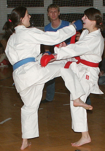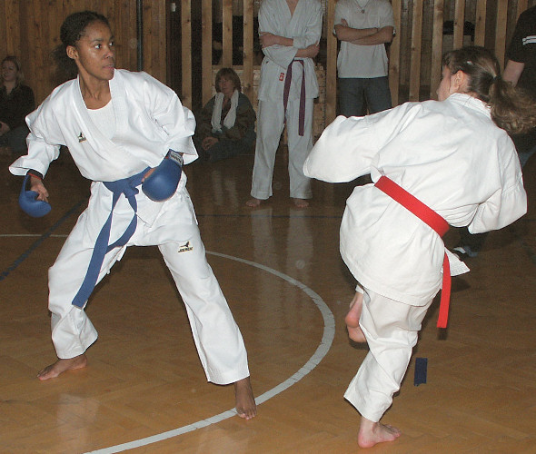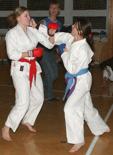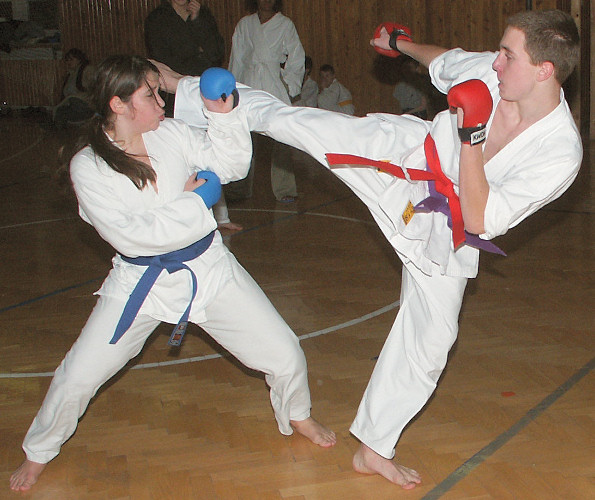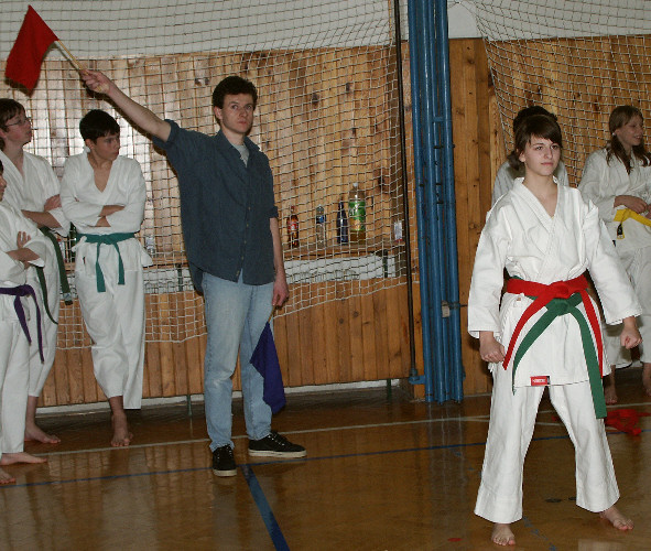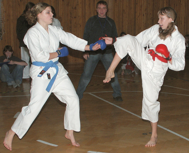 nevyhrála jen proto, že cvičila hrozně zběsile. V kumite pak celkem podle očekávání zmlátila Lenku.