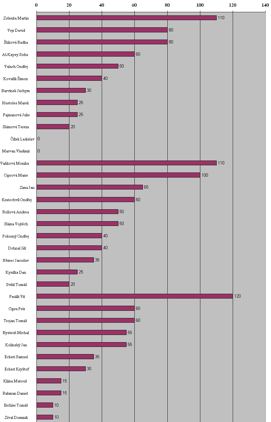 hodnotili dohromady (teda napřed každou zvlášť a výsledky se potom sečetly).