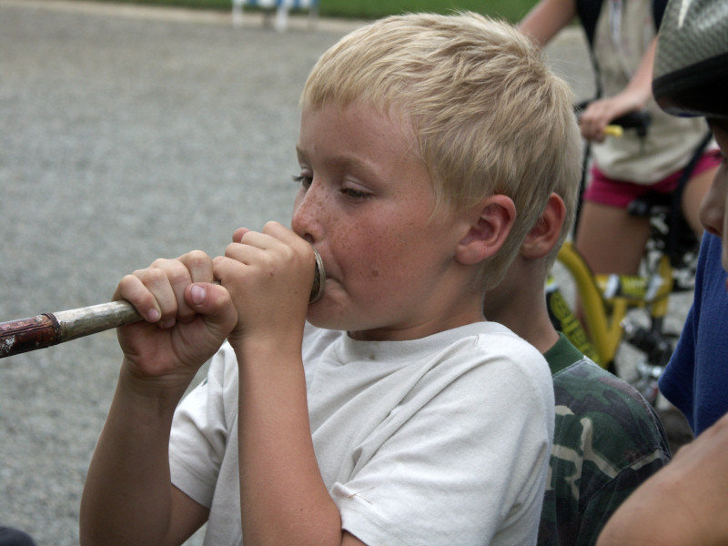 Nová atrakce na Orlíku - Said s tibetskou troubou a úchylným účesem.