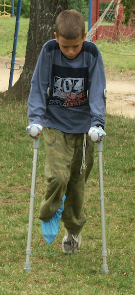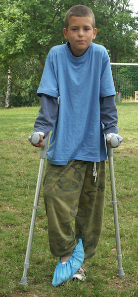 Pajdající simulant Pavel Bakule - po pár dnech se ukázalo, že to není nic hrozného. Když ho berle přestaly bavit, sundal škrobák a