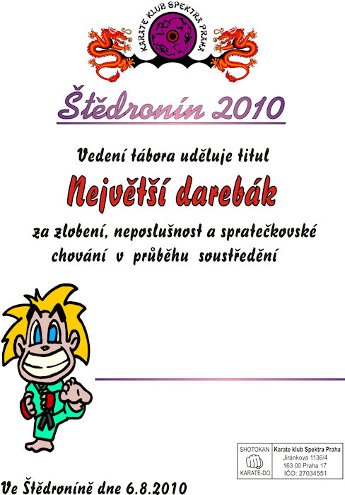 Jako nejhodnější karatisty vyhlašujeme vždy nejméně otravné jedince, které vedoucí třeba ani neznají jménem.