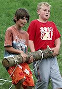 Loni byl trénink Rangers vpodstatě za trest pro největší bordeláře. Stala se z toho ale prestižní záležitost pro ty, „které Milan nikdy nezlomí“. Proto jsme letos tento trénink udělali povinný pro všechny a zařadili mezi silové soutěže. Loňští rangers měli sice kecy, že by to nemělo být na body, že to není soutěž ale rituál, ale nikdo neměl žádný racionální argument, proč by se to mělo dělat jen tak zbůhdarma. Kromě toho zapomněli, že původně to vůbec nebyl důstojný rituál, ale trest. Měli jsme s sebou i zvon, na který mohl kdokoliv kdykoliv zabimbat na znamení, že je měkoň a vzdává to. Za každé dvě minuty účasti byl jeden bod. Švindlující jedinci byli průběžně vyřazováni také. Běhání, skákání, kotouly a lezení do pahorku (případně běh s desetikilovou zátěžovou vestou) byl letos zpestřen ještě taháním dvou klád na laně. Akce byla jako loni zakončena posilováním v bazéně. Letos vydržely skoro do úplného konce i velké holky a někteří maláči, kteří tak patří mezi čekatele na titul Ranger. |