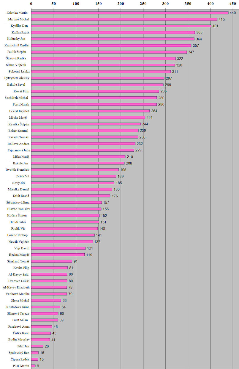 bylo letos málo holek na to, aby měly svoji kategorii, a tak skončily rozděleny mezi kluky. |