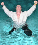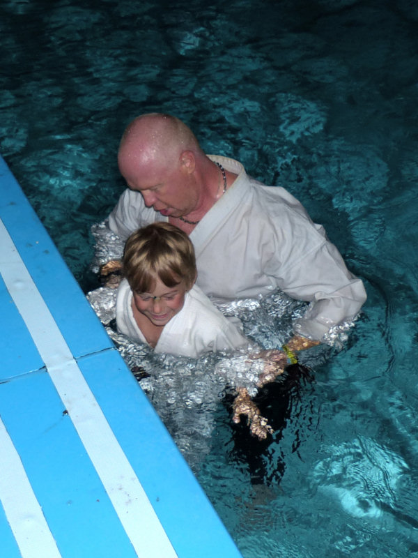 Letos jsme neměli žádnou noční bojovku. Většina těch starších z toho má vždycky akorát srandu. Ale noční trénink a výtržnost v bazénu si může užít každý. A taky jsme si to užili. Poté, co všichni karatisti prokážou, že umí novou katu, i když je vzbudíme po půl noci, se všichni hezky potichu přesuneme k bazénu. Tam, naopak za hlasitého povykování a rušení nočního klidu, všichni v kimonech do toho bazénu naskáčou (a když nemůžou naskákat, jako Kája se zalepenou hlavou), tak je aspoň ponoříme. |