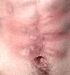 Každý rok zkoušíme naši oddílovou verzi známého pupenda. Výsledkem jsou krásné obtisky na břichách odvážných dobrovolníků. Kryštof se letos pokusil zaskočit oddílového doktora Radka, přišel se mu s výsledkem pochlubit a chtěl po něm diagnózu, co že to vlastně s břichem má. Ruka na jeho břiše šla diagnostikovat poměrně snadno a našeho felčara nezaskočila. |