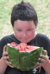 Patrikův táta nezklamal - stejně jako v minulých letech přivezl hromadu melounů. Tak velkou, že jsme je nedokázali vdechnout na jeden pokus. Melounová žranice tedy byla dva dny za sebou. A letos jsme ji konečně i vyfotili. V minulých letech všichni žrali ty melouny a nikdo nefotil, takže neexistují žádné obrazové záznamy. |