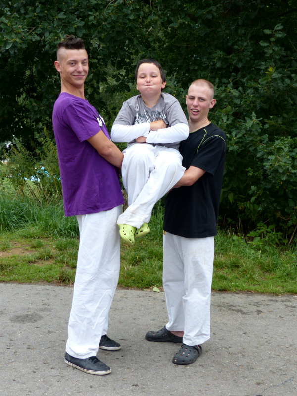 Kde se vzali, tu se vzali, najednou tam byli. Skupina německých pubescentů, vypadali jako fotbalový oddíl. Že by ale byli na soustředění to nějak moc nevypadalo. Přece by nejeli tak daleko na místo bez patřičného zázemí, teda bez pořádného fotbalového hřiště a nějakého soupeře. Oni se ani nějak moc nesoustředili. On se vlastně letos nesoustředil kromě nás nikdo. Možná tanečníci, ale ti byli pořád v jídelně, kde měli provizorní parket. Ale třeba malí pádelníci místo aby jezdili po Brčálníku, tak akorát běhali kolem tábora. |