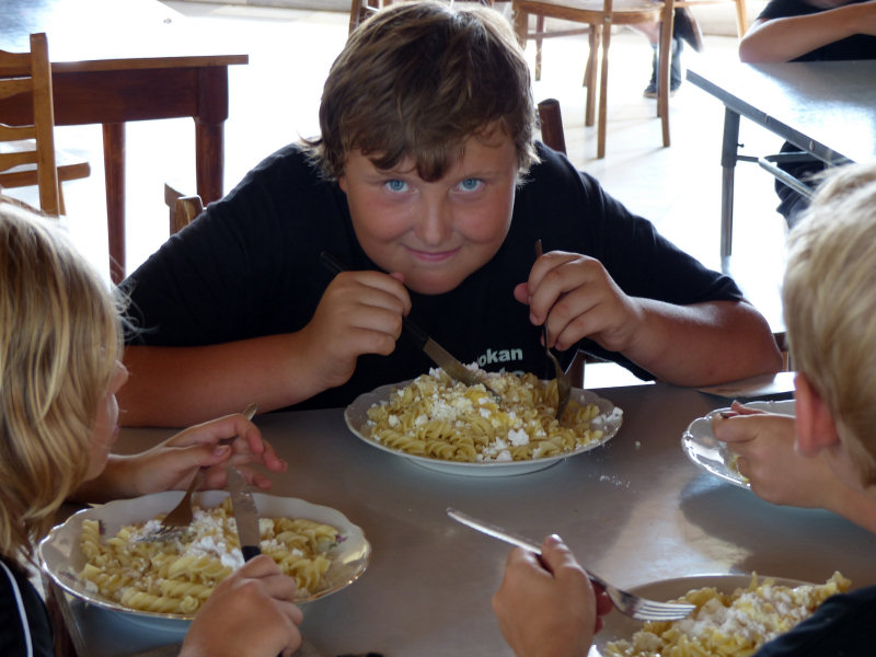 Když si tu věc nějaké dítě přiloží k uchu, tak se rozbrečí. Co to je? Není to hádanka. Všimnul si toho až letos doktor Radek, když si menší děti chodili do velitelské chaty půjčovat telefon, aby mohli zavolat mamince, když se jim stýskalo. Proto přístroj dostal uvedený titulní název. Pravda je, že většině prcků zatelefonování mamince pomohlo. Teda pomohlo přežít do dalšího dne a dalšího telefonátu. Po loňských nepříjemných zkušenostech, kdy největší telefonista byl schopen se přístroje zmocnit třeba na třičtvrtě hodiny, kdy děti rodičům po telefonu nestydatě lhaly a my jsme pak vysvětlovali, že ta jejich lež je opravdu lež, jsem připravil „telefonní pravidla”. Naštěstí letos nebyl s mobilováním jediný problém a zbytečná pravidla zůstala neuplatněna. Žebříček vedl logicky ten nejmenší - Kája, který prokecal 75 minut, ale to se v průběhu 14 dní klidně ztratí. Brekátor nepomohl jen Veronice. Ta kňučela, že chce jet domů tak hlasitě, až tatínek vyměknul a odvezl ji. |