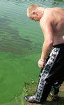Brčálník (řeka Otava) je o prázdninách zelený, zamořený sinicemi každý rok. Pokaždé se při příjezdu zděsíme, řekneme si, že se do toho opravdu nedá lézt, protože nás ty zelený zubatý chlupatý potvory sežerou, ale nejpozději po šlehačkové nebo balónkové bitvě se tam všichni naházíme. Nikoho nikdy nesežraly, protože je to vždycky zábava tak na 10 minut. Letos jsme ale vyměkli úplně. Ty zelený potvory na nás cenily ty zuby tak dravě, že nám doktor zakázal do Brčálníku lézt i po šlehačkové bitvě. Máme ale už šest let starý důkaz, že jsme vyměkli zbytečně - tehdy to bylo ještě horší - viz fotky. |