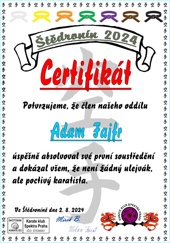 Certifikát za přežití podle počtu absolvovaných soustředění