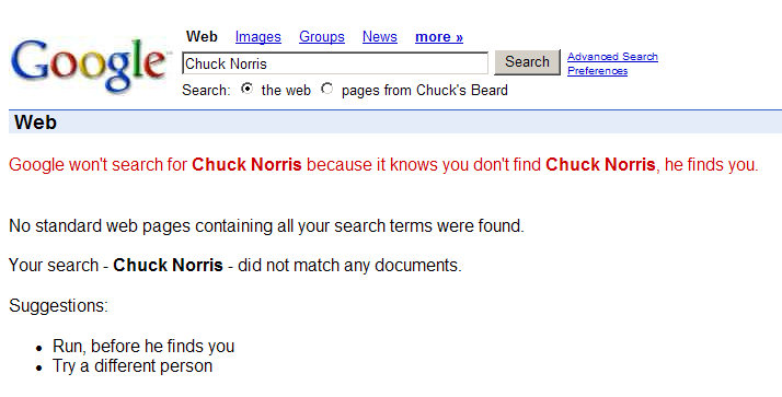 Google nebude hledat Chucka Norrise, protože ví, že ty nenajdeš jeho, ale on si najde tebe.
